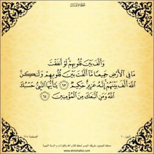 "And He united their hearts. If you spent everything in the Earth all together, you would not have united their hearts, but Allah united their hearts. He is the Most Majestic, Most Wise. O Prophet, Allah is enough for you and those who follow you from among the Believers."